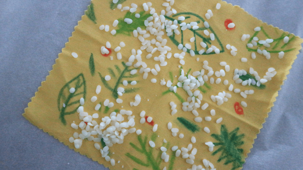 付属のミツロウチップを、布全体に均等に散らしましょう。