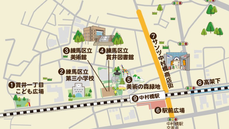 現在、練馬区立美術館・貫井図書館は、これまで以上に魅力的な施設を目指しリニューアルを進めています。 リニューアル後、美術館と図書館を起点として、商店街や街全体でアートを通したいろいろな交流やイベントができるようにしていくために現在練馬区が進めているのが、「美術のまち構想」です。